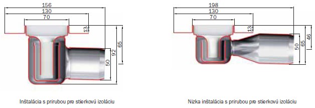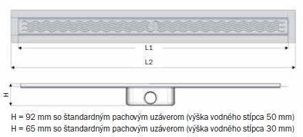 * inštalačná výška: 92 mm (pre sifón 50 mm) alebo 65 mm (pre sifón 30 mm)